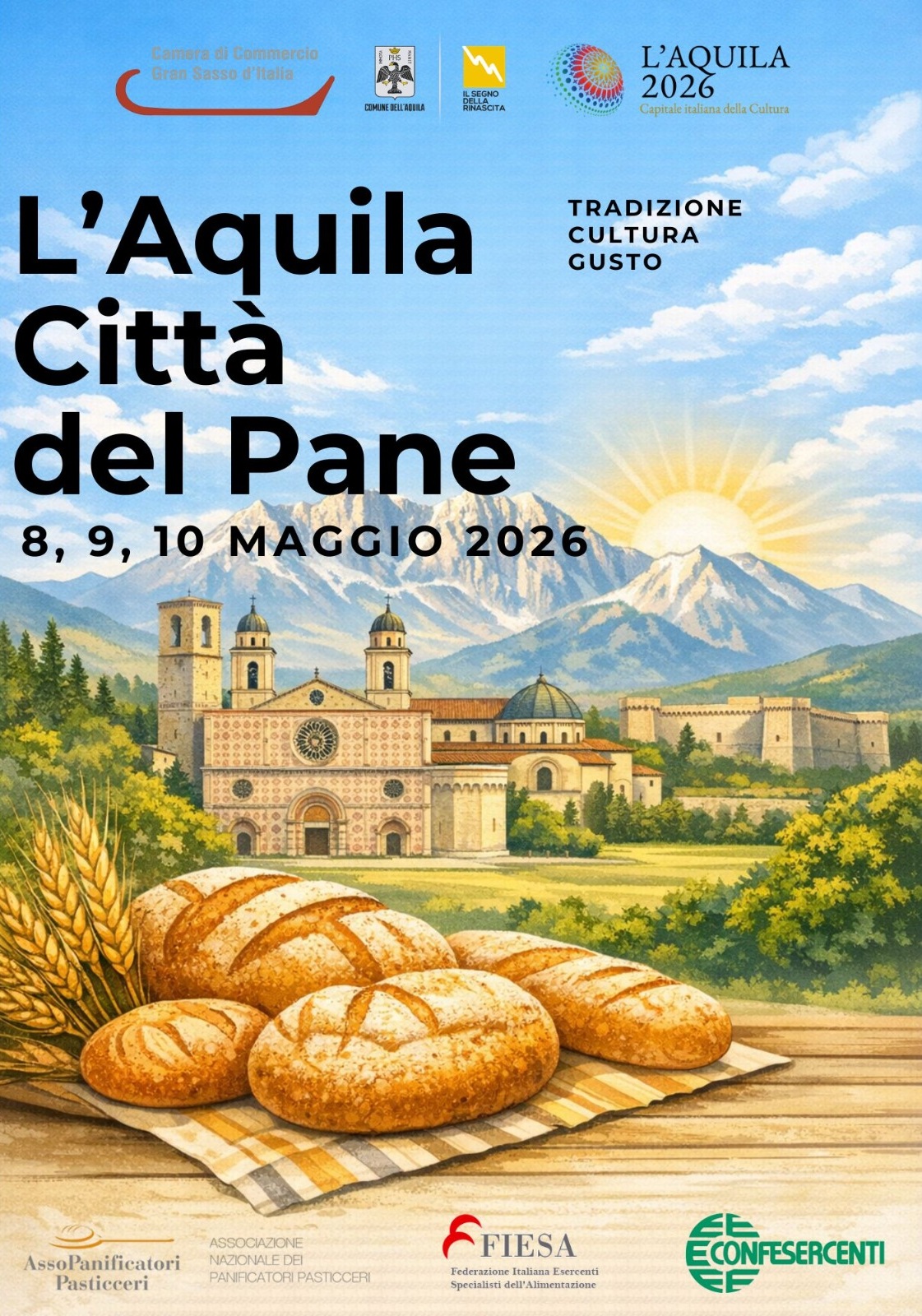 “L’Aquila Città del Pane” è un’iniziativa fortemente voluta da Fiesa e Assopanificatori Confesercenti per sensibilizzare alla tradizione italiana e al pane come simbolo di solidarietà e comunità.